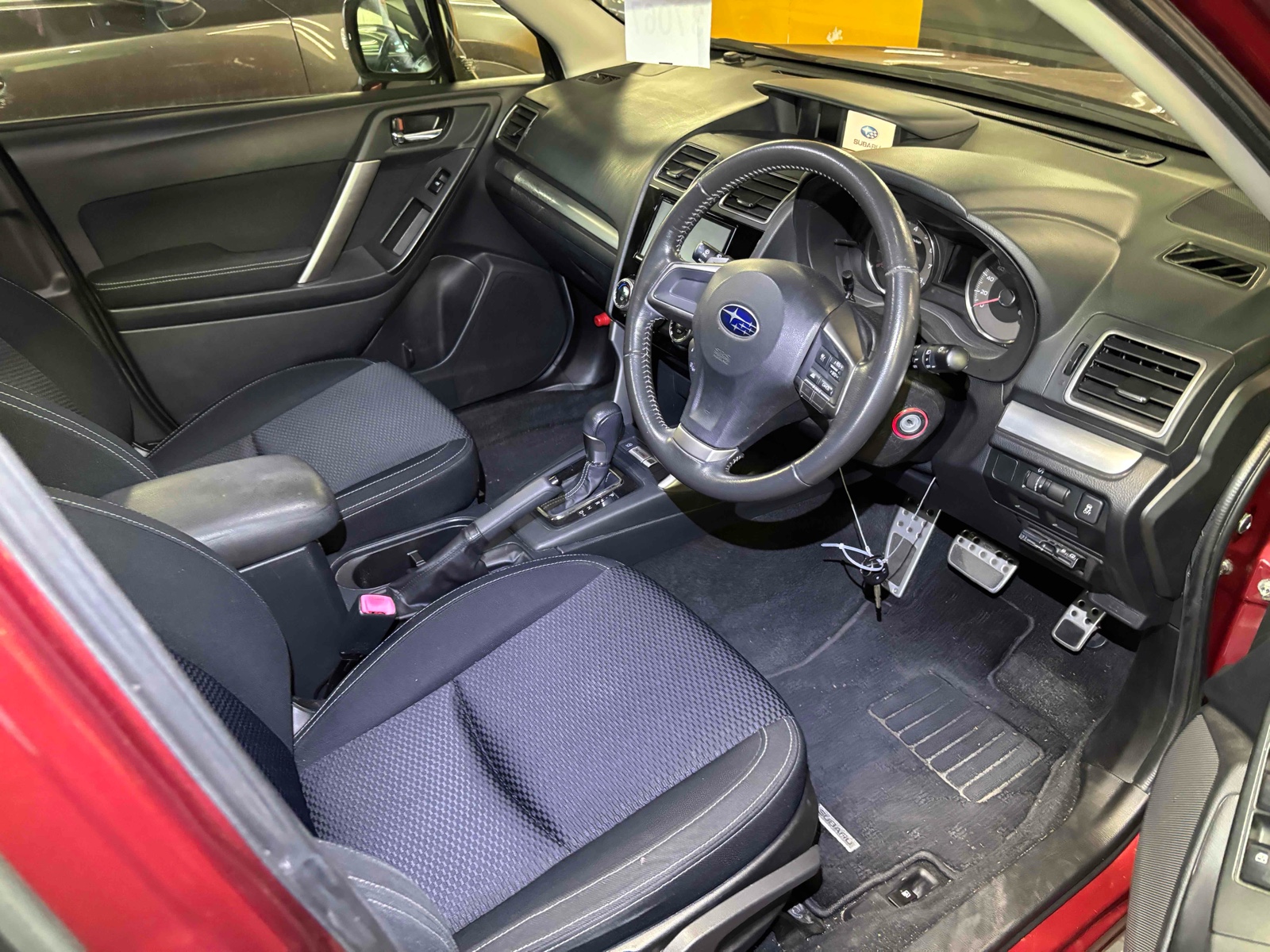 Drive the 2015 Subaru Forester and enjoy a smooth ride with its efficient petrol engine. This red beauty comes with 4WD and automatic transmission, making it perfect for all road conditions. With a mileage of 98,954, it's still eager for more adventures. Relax in its comfortable interior. The car is equipped with an air conditioner, power windows, and a foldable rear seat for extra storage. Safety is a priority with features like airbags, anti-lock braking, and electronic brake distribution. Feel secure and drive with peace of mind. The Forester also offers convenience with a rear wiper and UV glass to protect you from the sun. An anti-theft system adds extra security. Perfect for families or solo drivers, this car offers a reliable and enjoyable driving experience. Take your journeys to the next level with this outstanding vehicle.