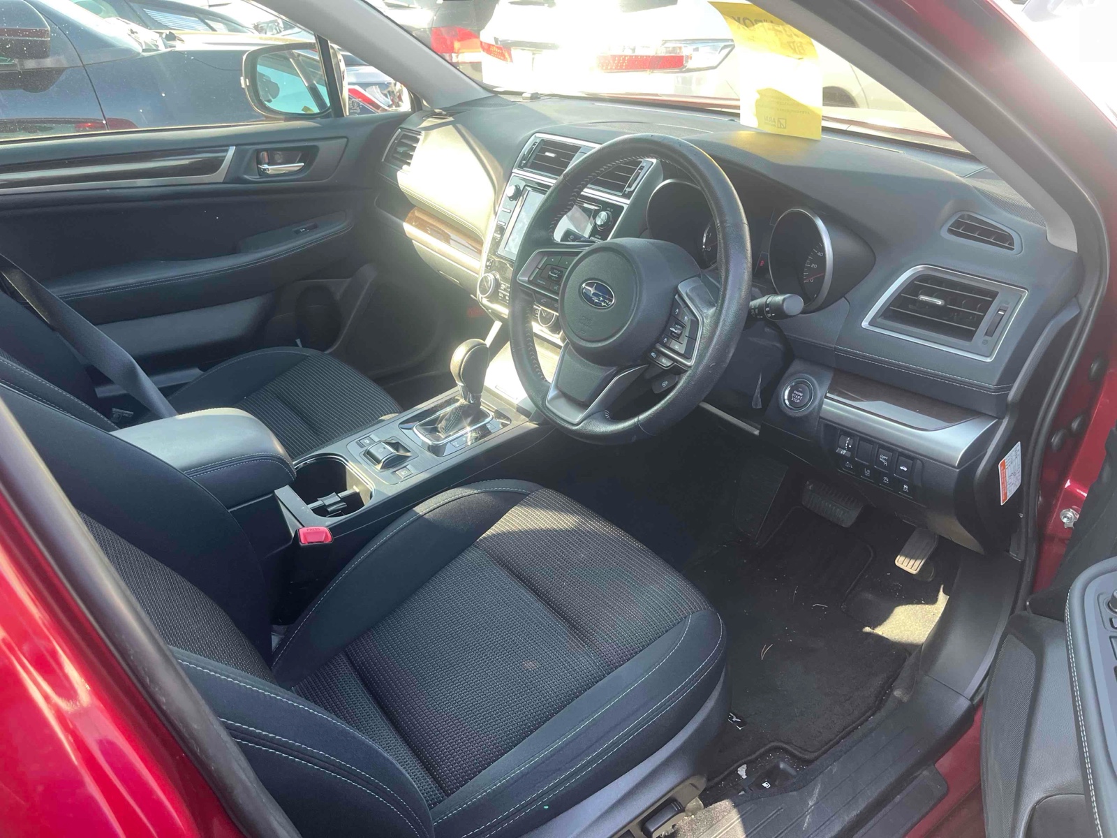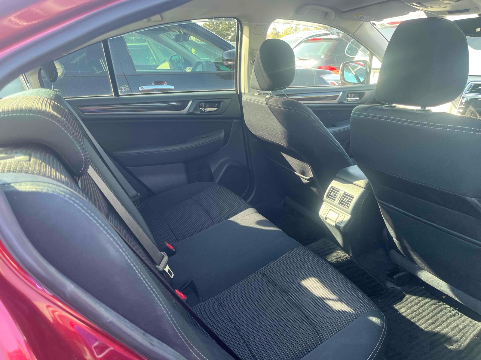 Discover the 2017 Subaru Legacy. This sleek red car offers a smooth driving experience with its automatic transmission and flexible 4WD. With its spacious interior, you'll enjoy comfort on every trip. Stay safe with multiple airbags, an advanced anti-lock braking system, and fog lights for better visibility. The Legacy's anti-theft feature keeps your car secure. The air conditioner and power windows add to your convenience. Take advantage of clever design features like foldable rear seats for extra space. The electric seat and wood panel interior give a touch of luxury. Experience reliable style and performance with the Subaru Legacy today.