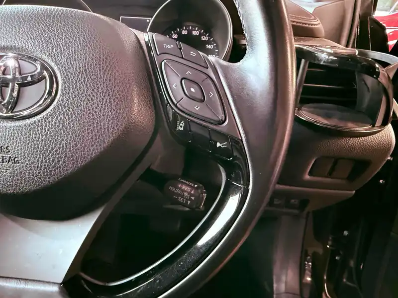 Experience the sleek and efficient 2017 Toyota C-HR Hybrid. This black beauty offers both style and a green footprint with hybrid tech. The automatic transmission and 2WD make every drive smooth and pleasant. Inside, enjoy comfort and peace of mind with eight airbags, radar cruise control, and stability control. The reverse camera provides easy parking in tight spots. Listen to your favorite tunes with the factory stereo system. Stay cool with UV filter glass and easily adjust settings with power windows and steering adjustment. With 95,634 miles, alloy wheels, and seatbelts for safety, this C-HR is ready for your adventures. Drive smart and safe with Toyota today!